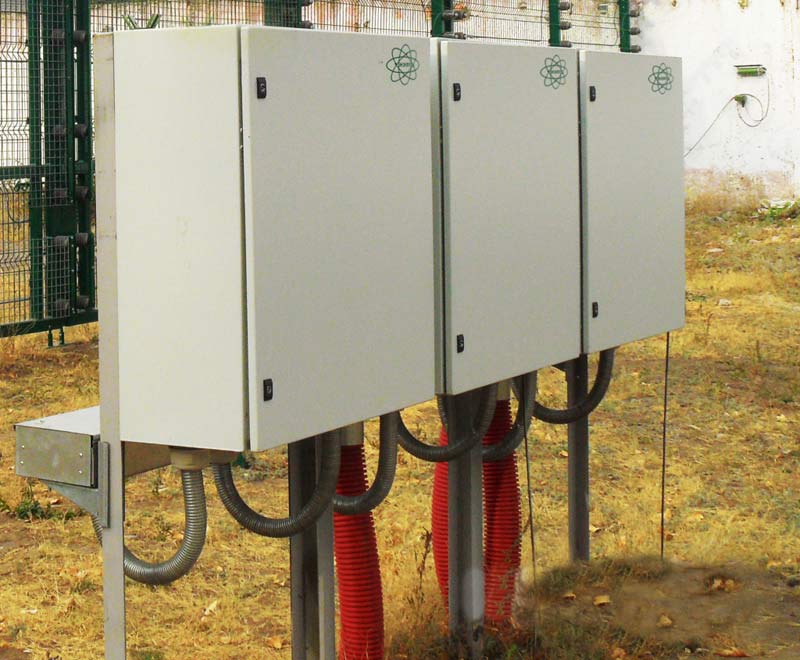 • Блоки высоковольтные в количестве от 1 до 10 штук в зависимости от высоты ограждения и конфигурации участка охраны. Устанавливаются на полотне электризуемого заграждения и соединяются со шкафом участковым.