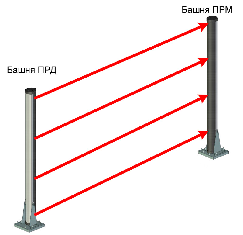 Глазурь БАЖК.425151.006 - четырехлучевое средство обнаружения (башня ПРМ и башня ПРД) с комплектом монтажных частей КМЧ-С для установки на горизонтальной поверхности (грунте).