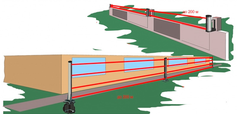 Принцип работы основан на создании между приемником и передатчиком зоны обнаружения (ЗО), сформированной из инфракрасных лучей и регистрации приемником пересечения этих лучей нарушителем.