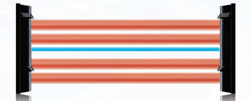 В серии SL-QDP реализована возможность выбора несущей частоты лучей (4 канала), что позволяет устанавиливать извещатели парами друг над другом или в ряд для защиты протяженных участков.