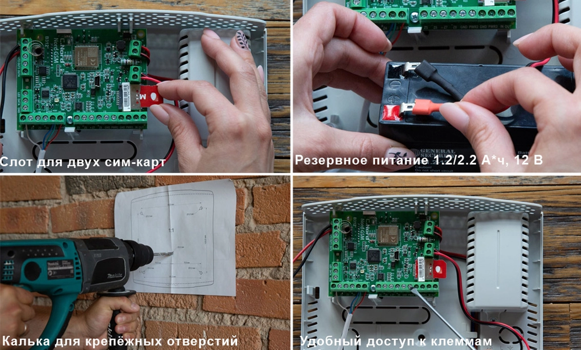 - Охранных шлейфов и дискретных выходов достаточно для подключения охранных датчиков и специализированных устройств.