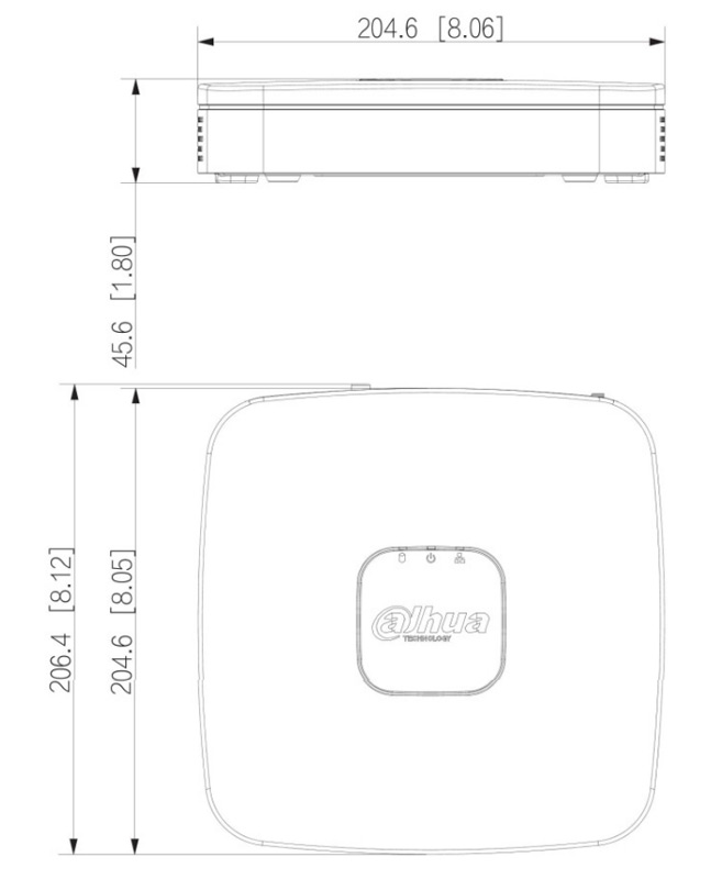 - 204.6 мм × 206.4 мм × 45.6 мм