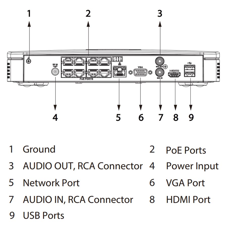 • Потребляемая мощность: Общая выходная мощность NVR составляет <10 Вт (без жесткого диска).