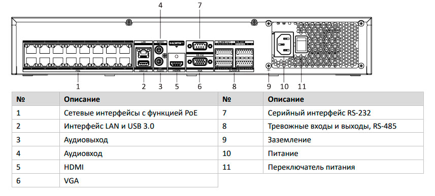 • Тревожный вход / выход может быть представлен опционально для некоторых моделей. Устройство с /Alarm16 + 9 в названии имеет 16 тревожных входов и 9 тревожных выходов.