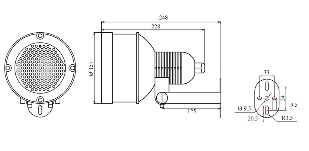 Основные технические характеристики прожектора включают температурный диапазон эксплуатации от –40 до +60 °С и максимально допустимую потребляемую мощность до 18 Вт (16 Вт по PoE). При своих компактных габаритах (248×157 мм) и весе 2 420 г устройство легко интегрируется в существующие системы видеонаблюдения, не требуя громоздкого оборудования.