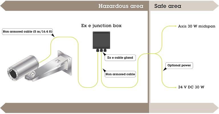 • Дополнительные аксессуары: Настенный кронштейн Wall Mount ExCam XF, мачтовое крепление Pole Mount ExCam XF, распределительная коробка EXTB-3 Junction Box ExCam, небронированные кабели ExCam (10, 25, 95 м), бронированные кабели ExCam (10, 25, 95 м), 4-портовый PoE-коммутатор Ex Connection Rail 4-port PoE PS 24, 8-портовый PoE-коммутатор Ex Connection Rail 8-port PoE PS 24, погодозащитный козырек Weathershield ExCam XF