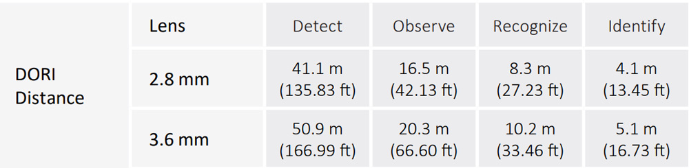 - 3.6 mm: H: 83°; V: 48°; D: 105°