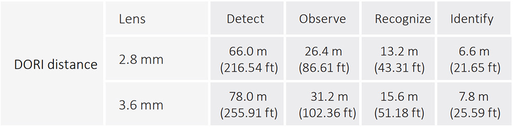 • Фокусное расстояние: 2.8 мм / 3.6 мм