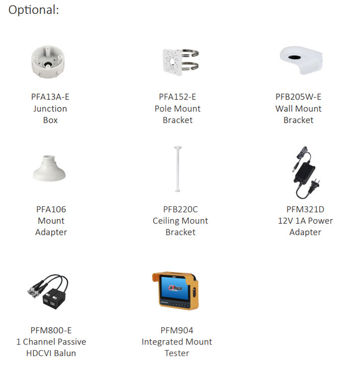 Камера поддерживает несколько видеоформатов, включая HDCVI, CVBS и другие два распространенных на рынке аналоговых HD-формата. Переключение между четырьмя форматами может осуществляться через экранное меню или с помощью PFM820 (UTC-контроллер). Эта функция делает камеру совместимой с большинством существующих HD/SD цифровых видеорегистраторов конечных пользователей.