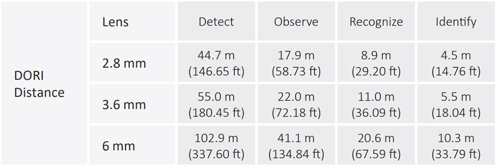 • Фокусное расстояние: 2.8 мм, 3.6 мм или 6 мм