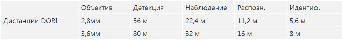 • Фокусное расстояние: 2,8 мм; 3,6 мм