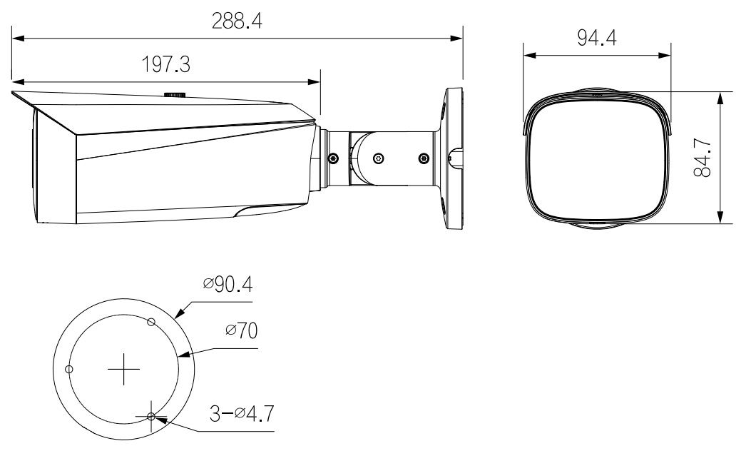 • Размеры: 288.4 мм × 94.4 мм × 84.7 мм