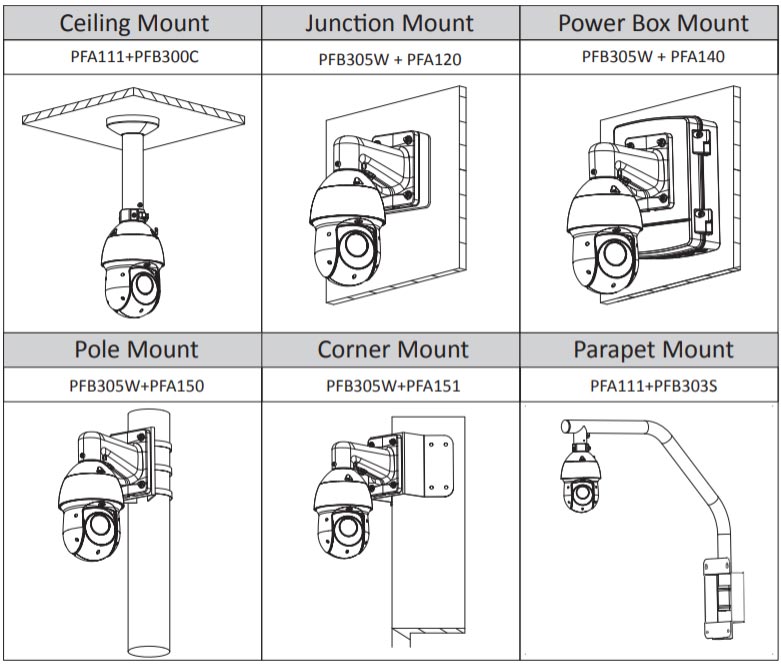 • Скорость перехода по предустановкам: Панорамирование: 240°/с: наклон: 200°/с