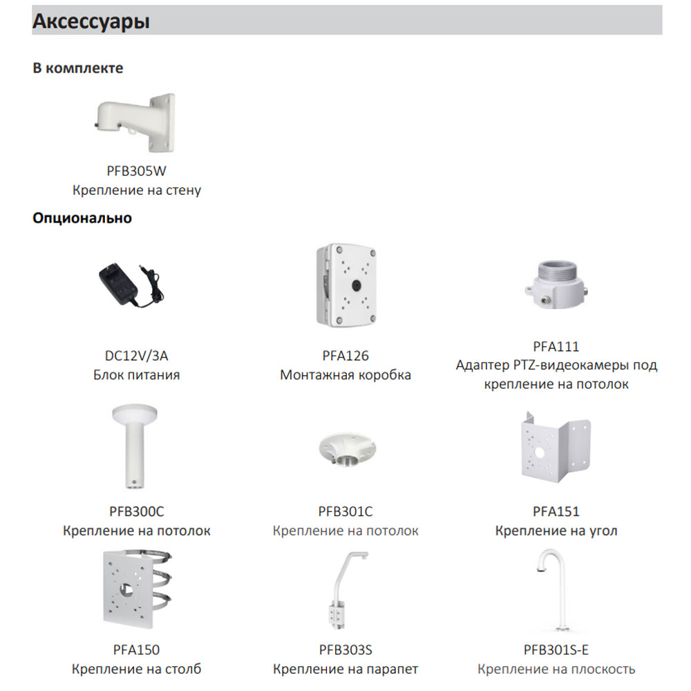 • Дополнительное оборудование для видеонаблюдения