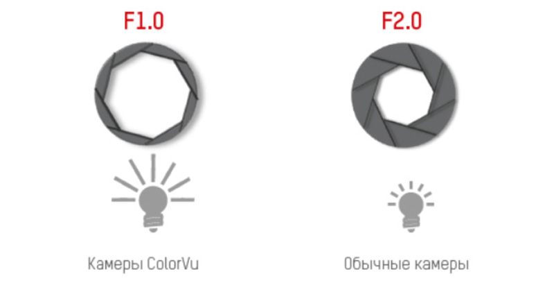 Апертура F1.0 позволяет собирать больше света для получения более ярких изображений. Объектив камер может фокусировать на матрицу в 4 раза больше света чем обычные камеры, и это дает возможность делать изображение намного ярче.