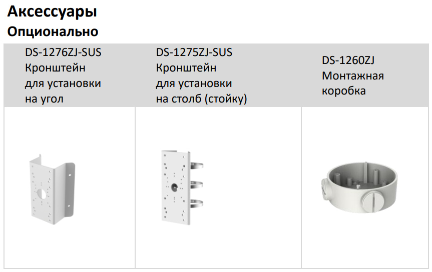 • Дальность ИК-подсветки: Модели с литерой -4I: до 80 м