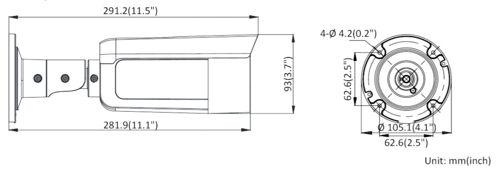 • Размер камеры: Ø105.1 × 291.2 мм (Ø4.1 × 11.5″)