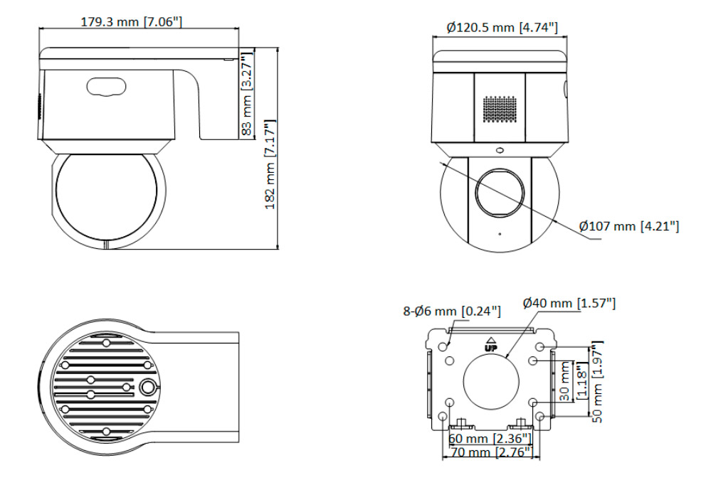 • Размеры: 179.3 × 120.5 × 182 мм (7.06 × 4.74 × 7.17″)