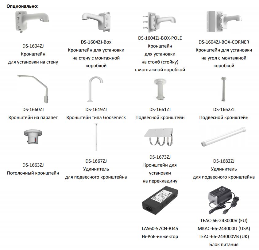 • Дополнительное оборудование для видеонаблюдения