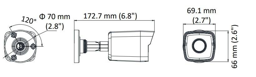 - 2.8 мм, горизонтальный 103°, вертикальный 59°, диагональный 118°