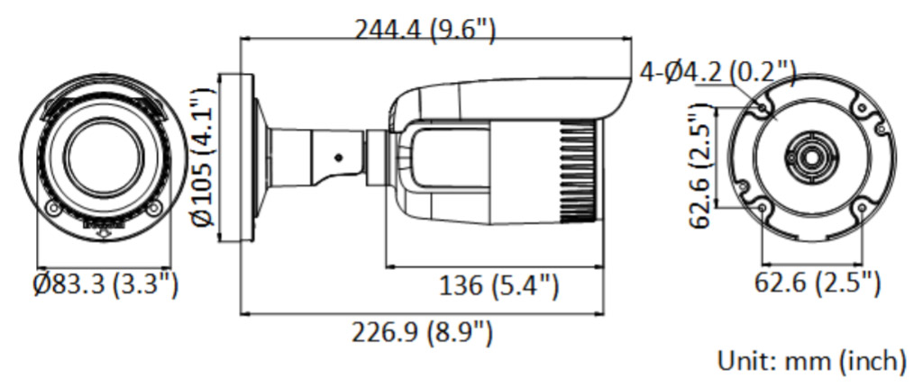 • Размер камеры: Ø 105 × 244.4 мм (Ø 4.1 × 9.6″)