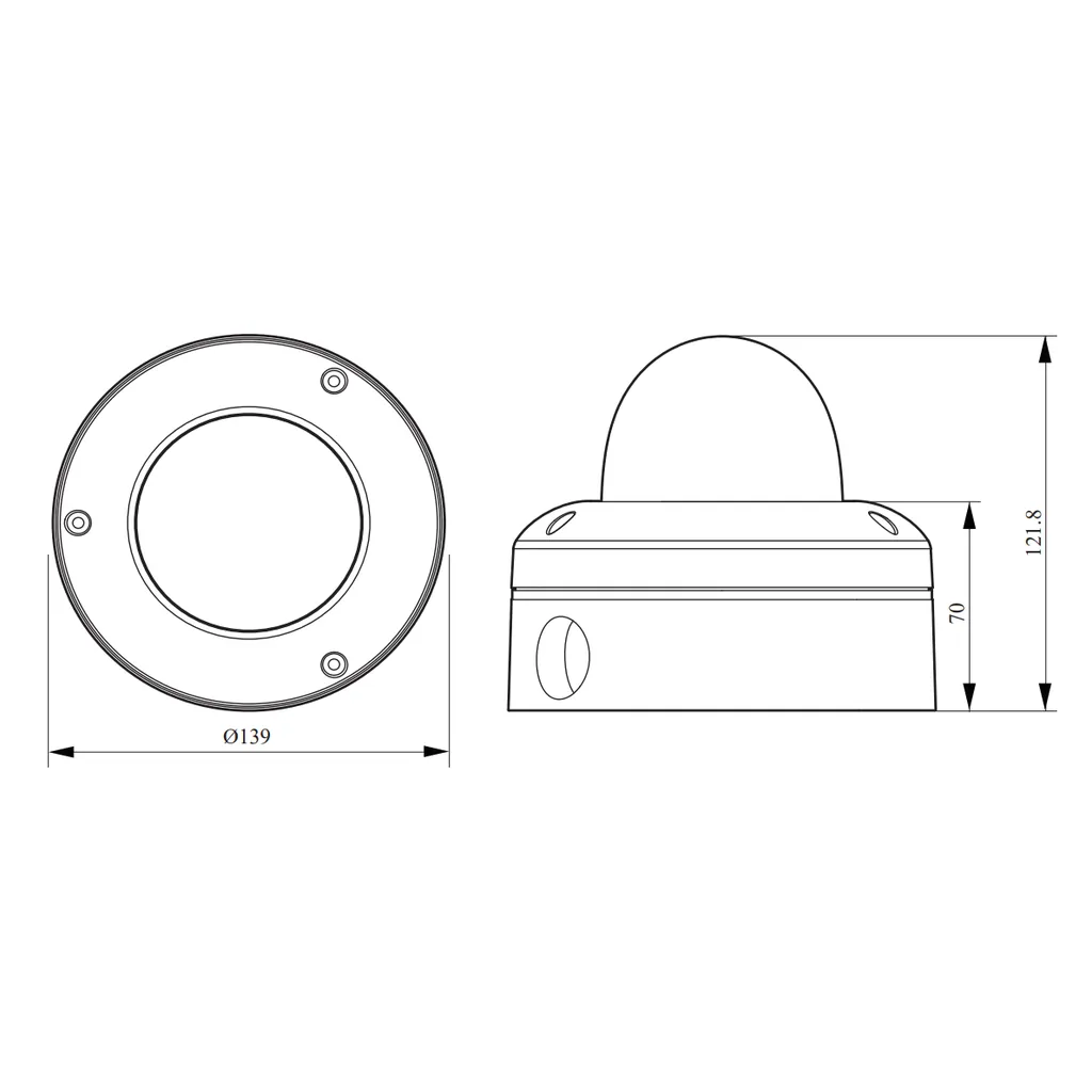 - Габаритные размеры: 139 (Ø) × 121.8 (В) мм