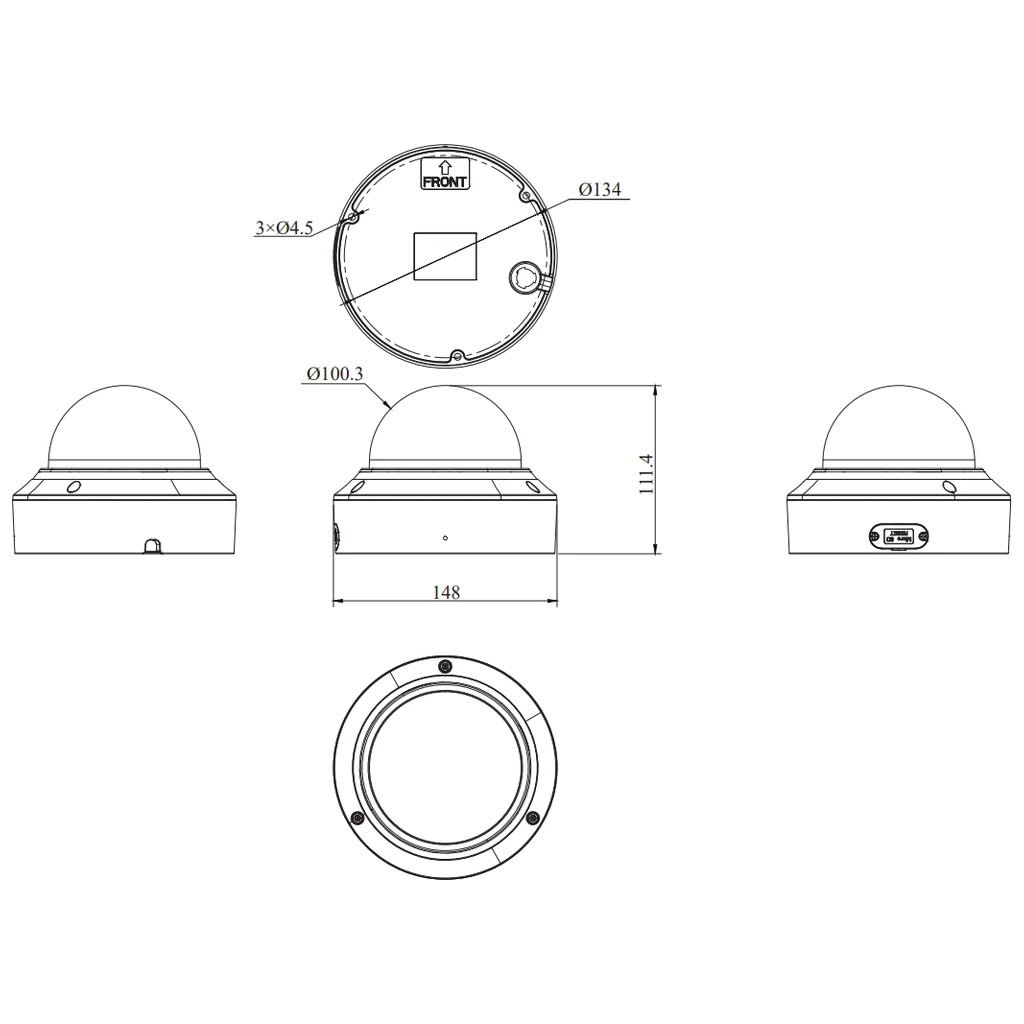 Корпус из металла защищён по IP67 и IK10, выдерживает температуру –50…+60 °C, грозовые импульсы до 6 кВ и скачки напряжения ±25 %. Питание доступно как по 12 В DC, так и по PoE 802.3af, а слот microSD до 256 ГБ страхует запись при обрыве связи. Один тревожный вход/выход, ONVIF Profile S/T/G и открытое API упрощают интеграцию в любые системы, а компактные габариты 111,4 × 148 мм и вес 970 г позволяют устанавливать камеру незаметно и без усиленного крепежа.