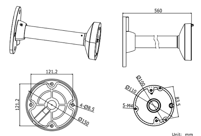 Стена, на которую устанавливается кронштейн, должна выдерживать вес предполагаемой камеры и аксессуаров в троекратном размере.