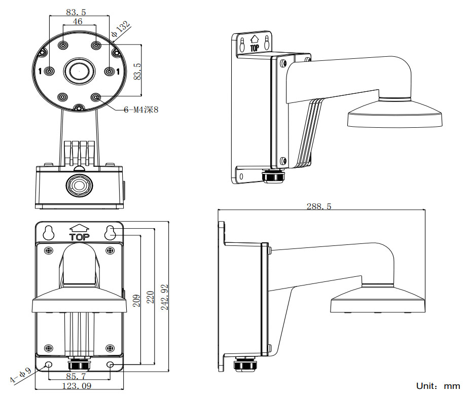 • Для крепления на стену купольных камер