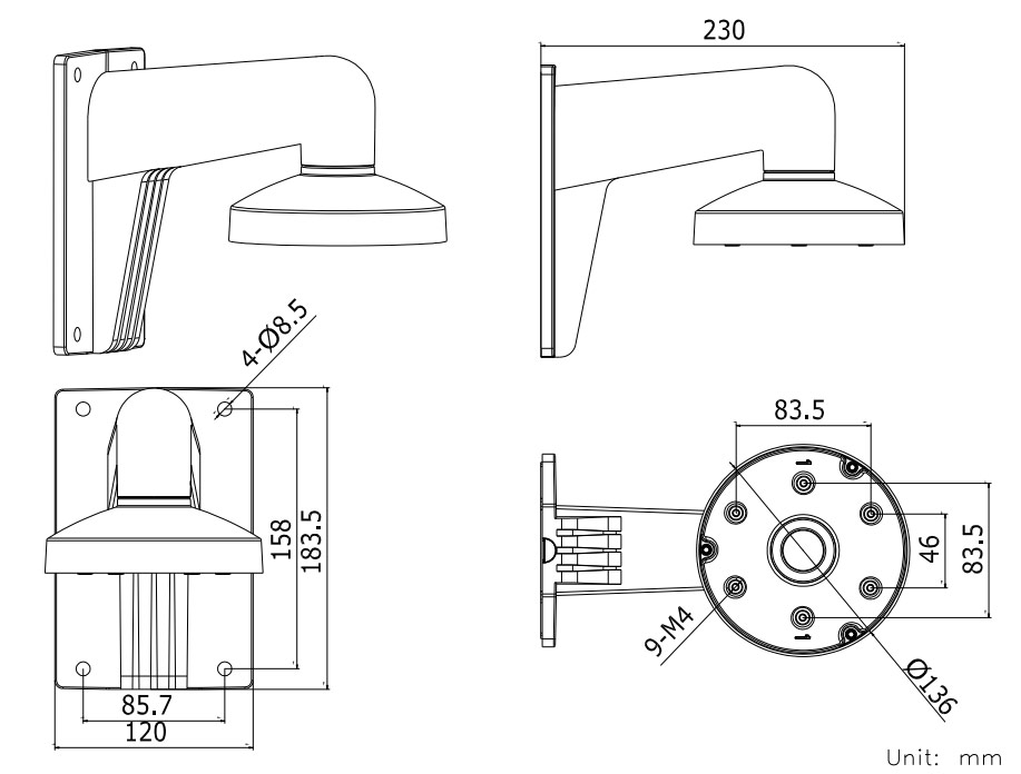 • Для крепления на стену купольных камер