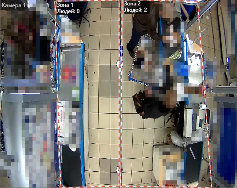 Оператор системы видеонаблюдения может настроить до 6 зон детектирования очереди на одну камеру, а также пороговое значение числа людей в одной зоне. При превышении этого порогового значения будет подан сигнал тревоги.