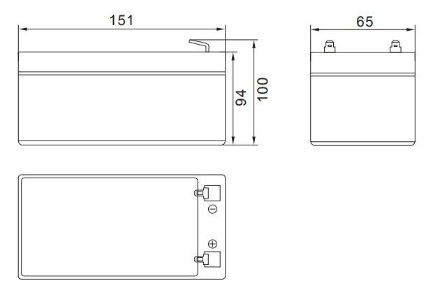 Аккумулятор 12 В 7 Ач, габариты 151*65*100 мм.