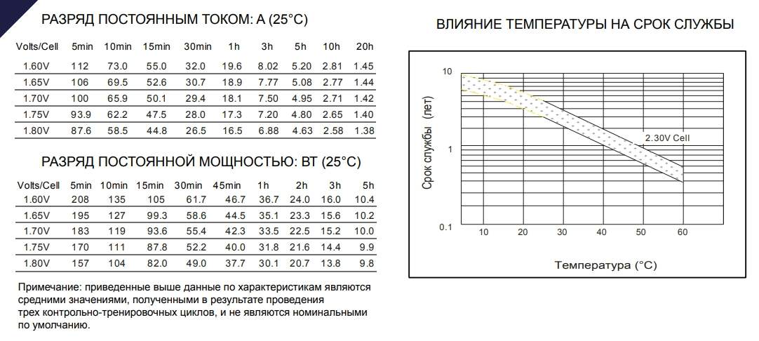 • Диапазон температуры при разряде, °С: от -15 до +50