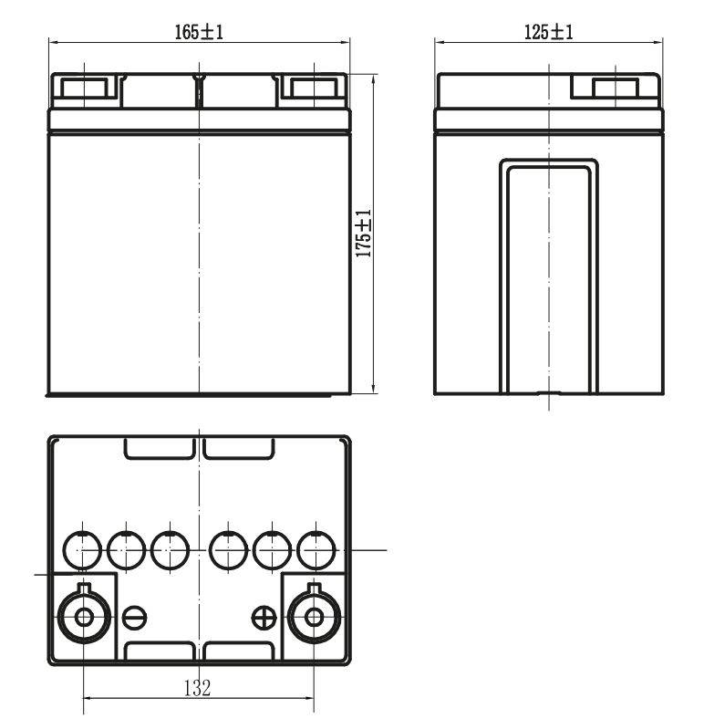 Аккумулятор 12 В 28 Ач, габариты 165*125*175 мм. Аккумулятор герметизирован, не нуждается в обслуживании и доливе воды, рекомендованный срок его использования – до 5 лет.