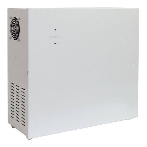 • питание нагрузки (две выходных клеммных колодки) стабилизированным напряжением постоянного тока при наличии напряжения в электрической сети, согласно п.2 таблицы и суммарным током потребления по трём выходам, включая ток заряда АКБ, не более 24 А;