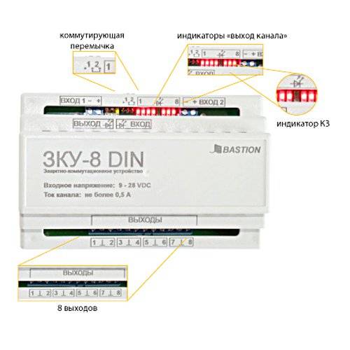 возможность каскадного подключения к устройству нескольких других ЗКУ-8 для увеличения количества защищаемых каналов