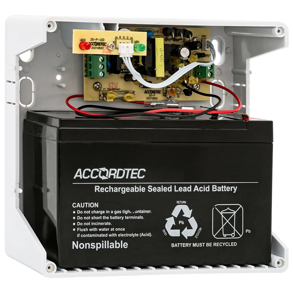 Блок бесперебойного питания AccordTec ББП-20 исп.1 предназначен для обеспечения стабильного электропитания систем видеонаблюдения, охранно-пожарных сигнализаций и СКУД. Устройство сохраняет работу подключенного оборудования при перебоях в сети, предотвращая его отключение и сбои. Компактный корпус из прочного пластика и настенный способ монтажа делают установку максимально удобной даже в ограниченных пространствах.