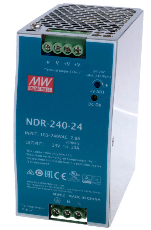 NDR – серия источников питания на DIN-рейку в узком корпусе для бюджетного применения.