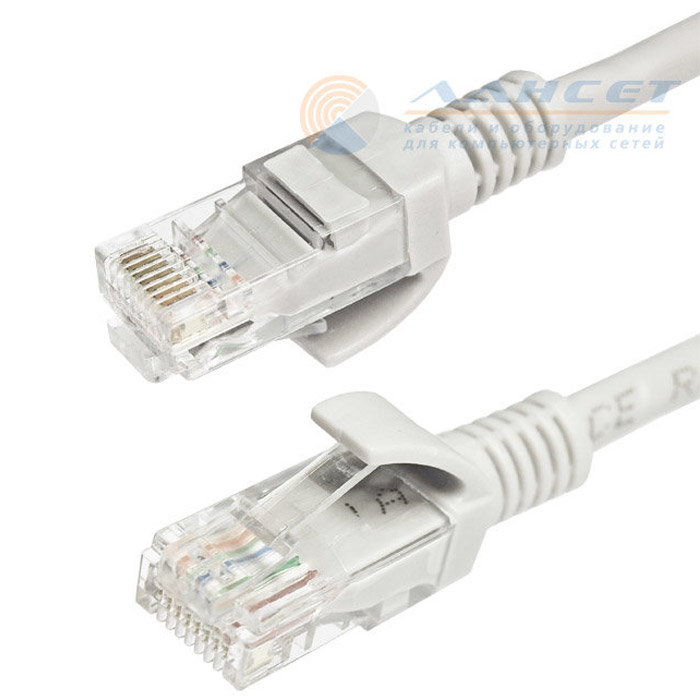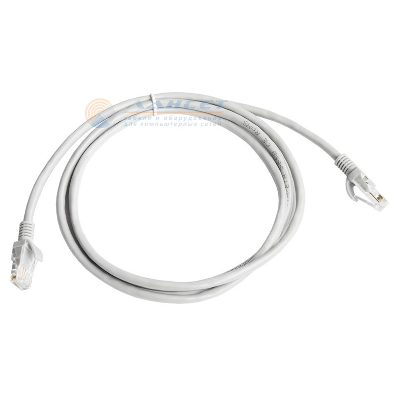 Коммутационный шнур (патчкорд) LANSET U/UTP 4 пары, Кат.5е (Класс D), 100МГц, 2хRJ45/8P8C, T568B, заливной, многожильный, BC (чистая медь), PVC нг(B), серый, длина 2 метра.
