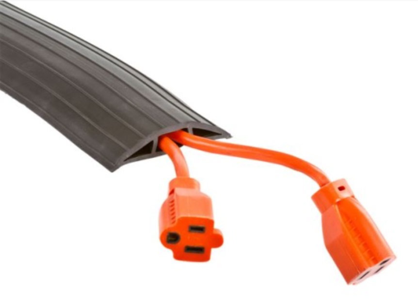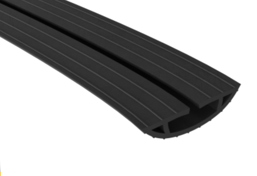 С верхней стороны имеет протектор для предотвращения проскальзывания колес. С нижней стороны - желоб для прокладки кабеля. Длина кабель-канала 9 метров. Регулировка длины кабель-канала возможна с помощью ножниц или ножа.