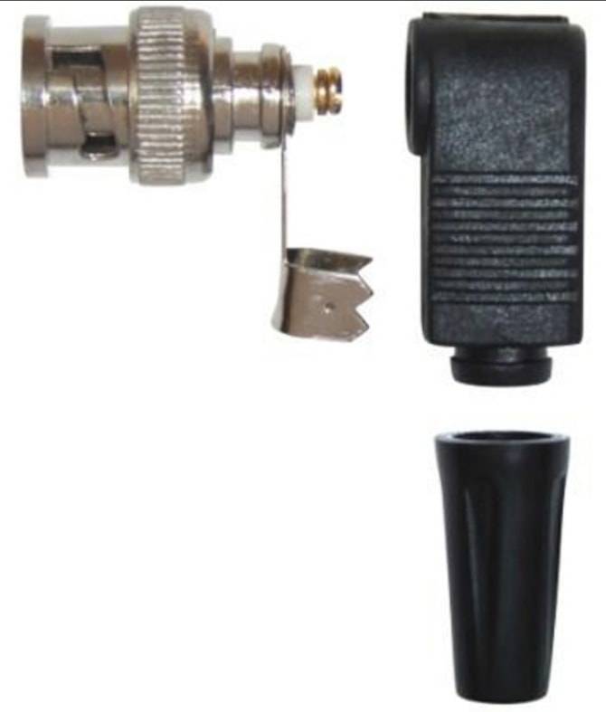 Под коаксиальный кабель с D-нар. от 3,3 до 7,0 мм (крепление под винт), угловой корпус.