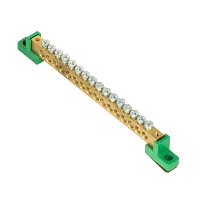Шины предназначены для присоединения нулевых проводников (шина N) и заземления (шина PE). Шины выполнены из латуни и никелированной латуни. Нулевая шина устанавливается на изоляторе.