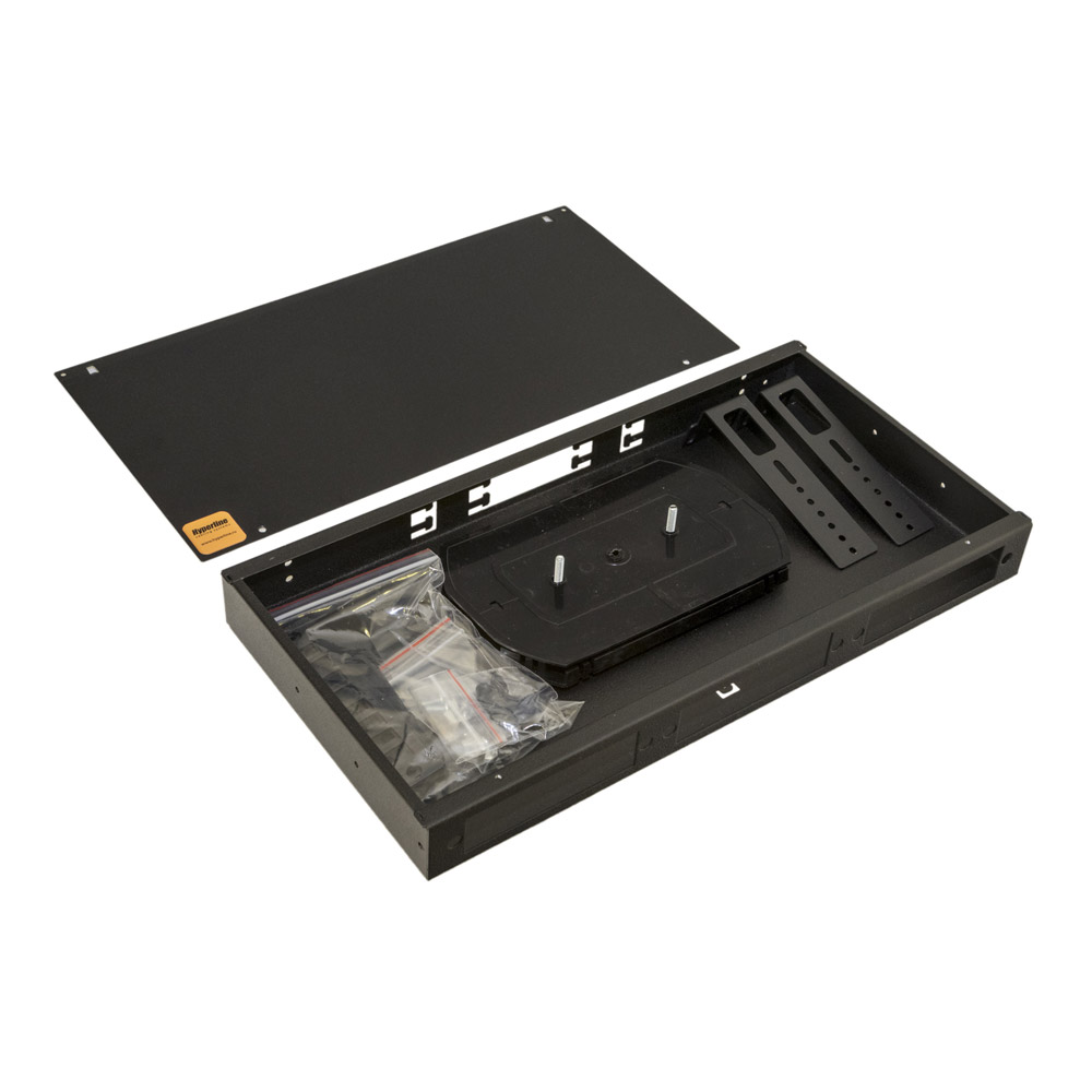 Hyperline FO-19R-1U-3xSLT-W140H42-24UN-BK Бокс оптический универсальный 19", от 8 до 24 портов (SC, duplex LC, ST, FC), со сплайс пластиной, без пигтейлов и проходных адаптеров, 1U, черный.