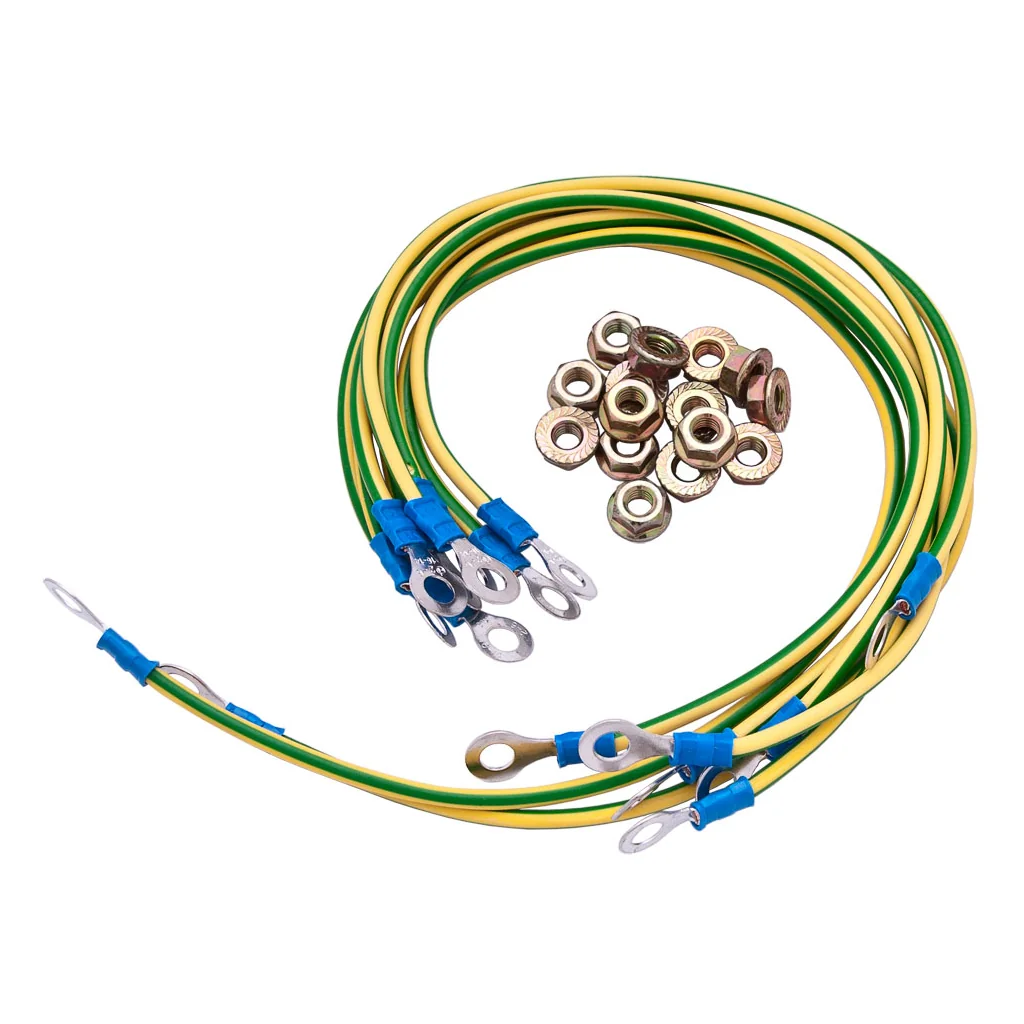 Комплект состоит из восьми проводников: шесть длиной 30 см и два — 40 см, а также шестнадцати гаек с фланцем М6, что позволяет организовать несколько точек заземления в одном корпусе. Все элементы упакованы компактно и поставляются готовыми к использованию, что значительно ускоряет монтаж и минимизирует подготовительные работы.