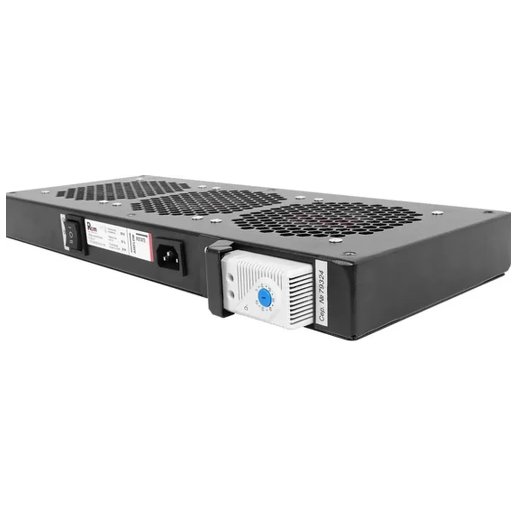 Корпус модуля изготовлен из стали и защищён стойким порошковым покрытием глубокого чёрного цвета (RAL 9005), что гармонично сочетается с основными сериями телекоммуникационных шкафов. Встроенный терморегулятор с выносным датчиком автоматически переключает скорость вращения крыльчаток при изменении температуры внутри стойки, оптимизируя энергопотребление (всего 48 Вт) и продлевая ресурс вентиляторов. Благодаря продуманной системе вибро-демпфирования уровень шума удерживается на отметке 130 дБ, что допустимо для технических помещений, а плотная решётка предохраняет персонал от случайного контакта с вращающимися лопастями.