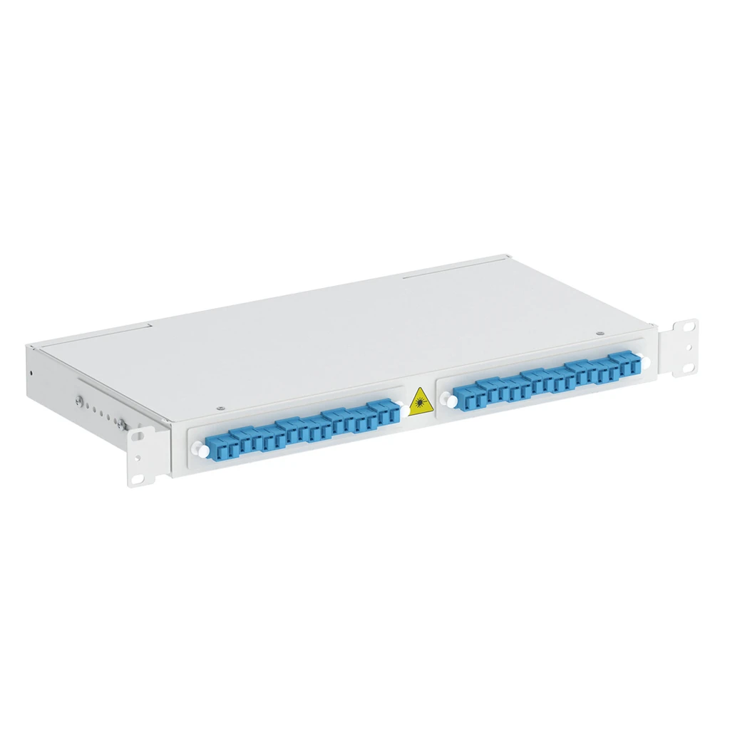 Изделие выполнено в модернизированном исполнении с учетом современных требований к плотности монтажа и эргономике обслуживания. Высота корпуса составляет 1U, что позволяет экономить пространство в стойке. Конструкция включает два кабельных ввода и съемную крышку для обеспечения защиты внутренних компонентов. Комплектация предусматривает наличие всех необходимых элементов: планок с адаптерами SC/UPC, пигтейлов, КДЗС и монтажного набора.