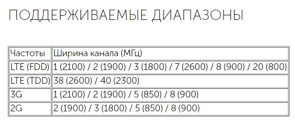 • Встроенный LTE-модем с поддержкой диапазонов 1, 2, 3, 7, 8, 20, 38, 40 для сетей LTE