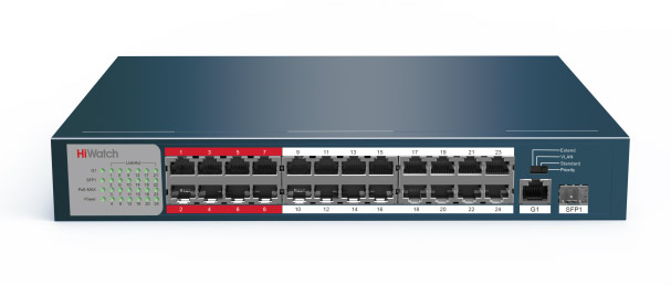 - При передаче на большое расстояние (порты 17–24), питание по 8 каналам — одновременное питание по кабелям Ethernet 1/2/3/6 и 4/5/7/8