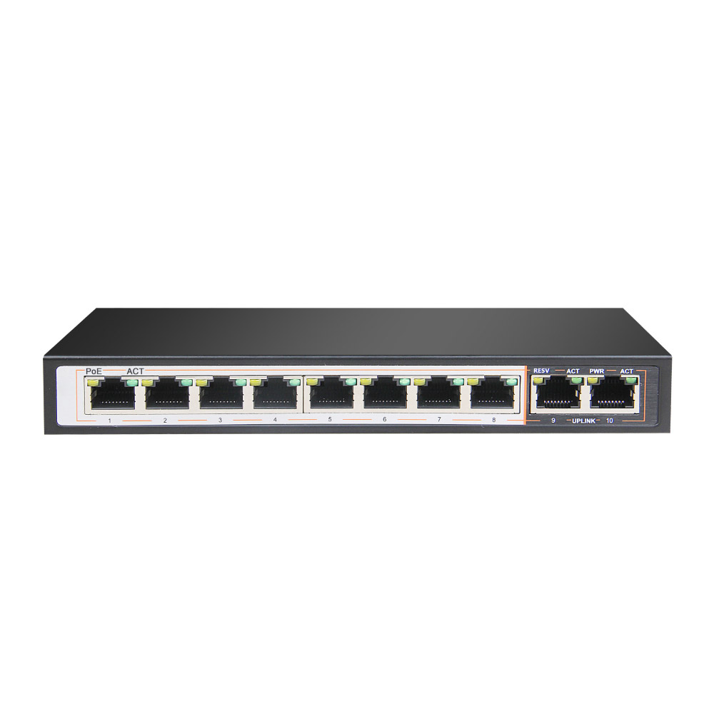 • 8 портов 10/100Base-TX (PoE+), 2 порта 10/100Base-TX