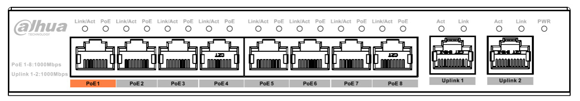- Порты 1–8: 8 × RJ-4510/100/1000 Mbps (PoE)